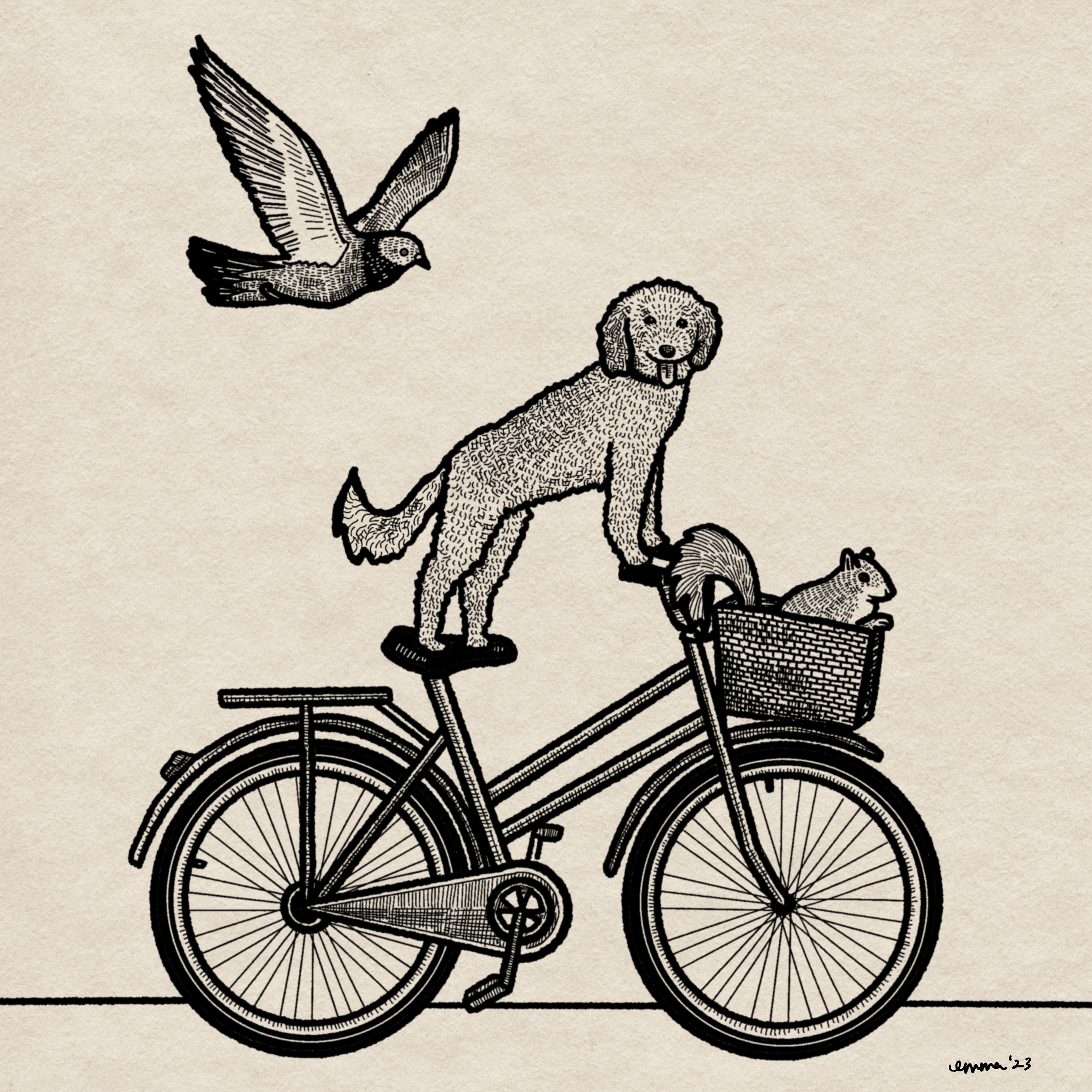 When a potential client first approaches me for a commission, I love hearing what they have in mind -- no amount of detail is too much! Reference photos are especially welcome if it’s a commission of a particular animal or person. I then provide a few rough drafts for feedback and iteration so that I’m confident that we have the same vision for the piece. Finally, I provide the final version for feedback and am happy to make edits as needed.