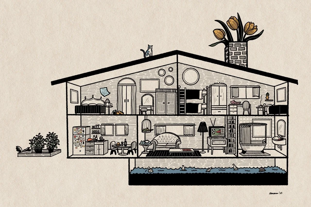 Looking at the rest of my website is the best indication of the type of art that I create! I primarily focus on black and white linework, using pointillism and crosshatching to add texture. I am always excited to incorporate a whimsical, humorous, or surreal dimension to my commissions, if that is something that a client is interested in.